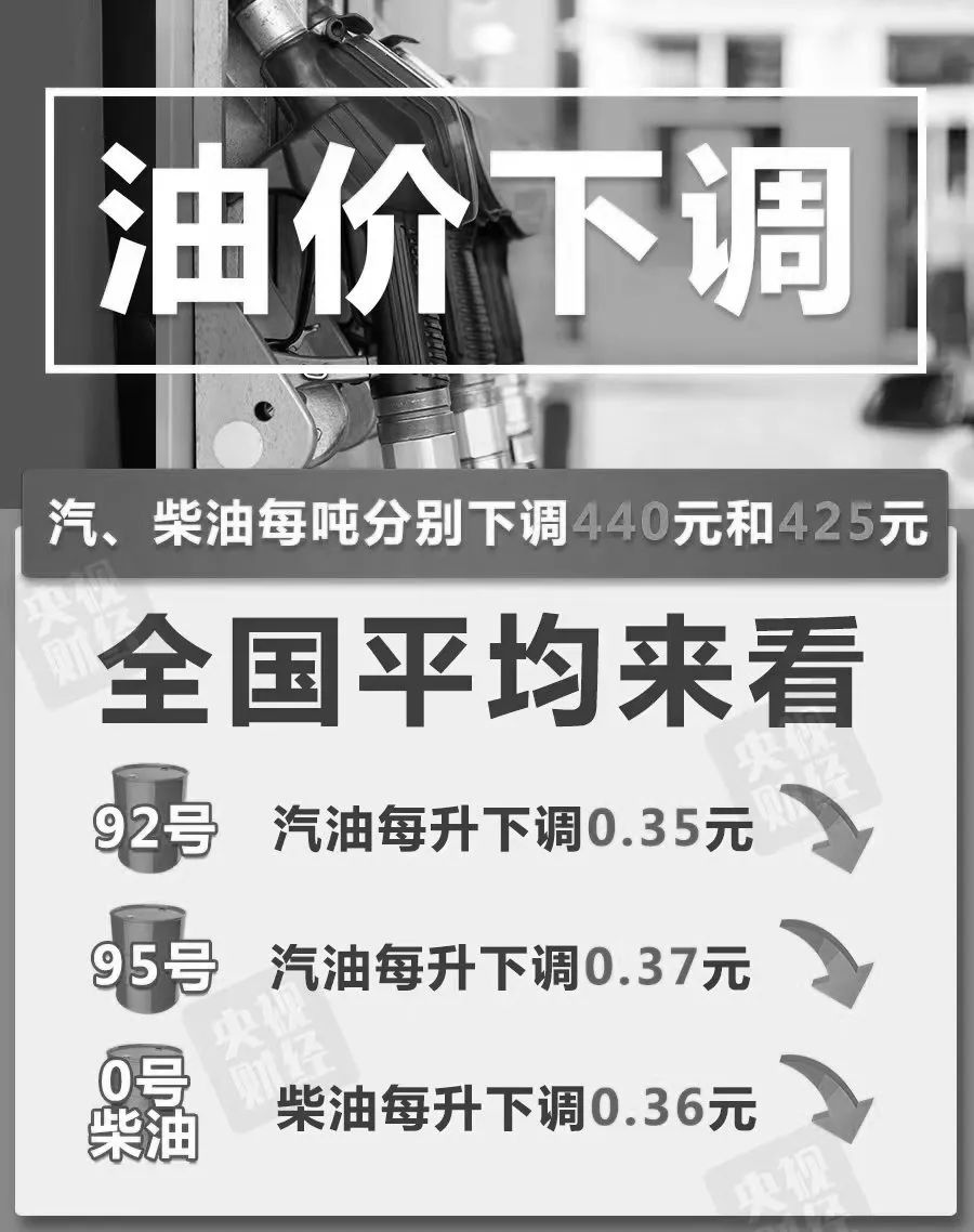 95號汽油下調(diào)0.37元;