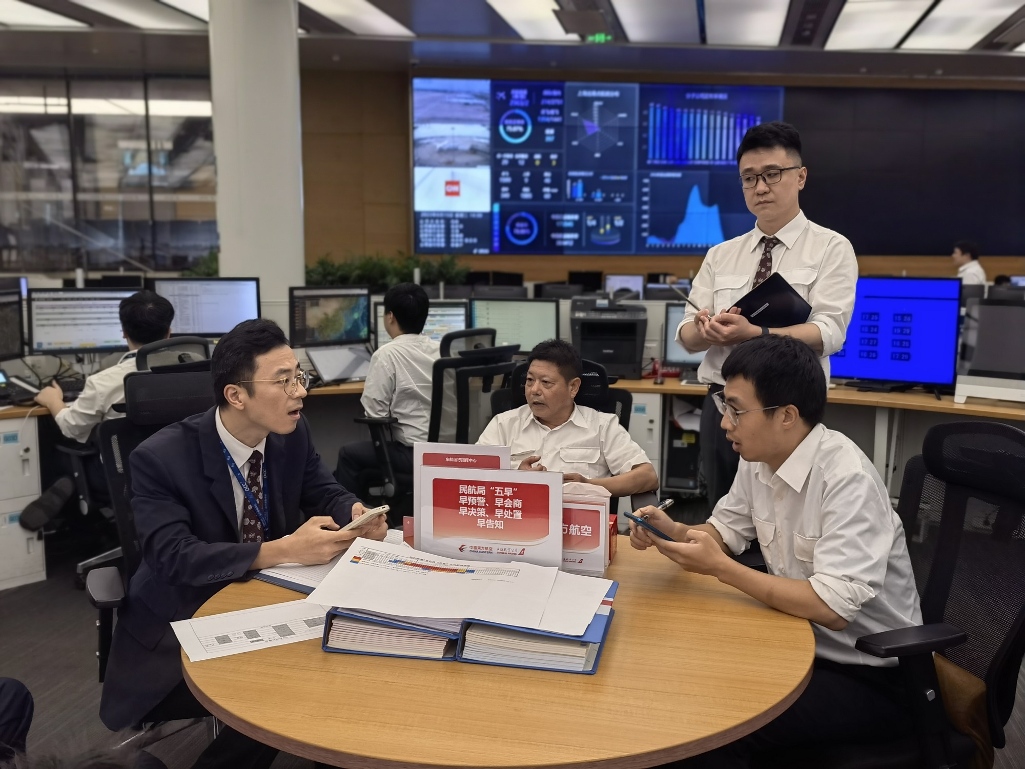 暑運(yùn)期間,東航的航班量高位運(yùn)行,日均客座率、航班量幾乎都維持在80%左右、3000班以上,這就對(duì)航空公司的各項(xiàng)工作提出了更高的要求。“各席位注意了!馬上到?jīng)Q策區(qū)開(kāi)臺(tái)風(fēng)決策會(huì)。”隨著陳春益發(fā)出的指令在OCC響起,十幾個(gè)來(lái)自氣象、簽派等不同席位的同事迅速聚集在決策區(qū)內(nèi),共同對(duì)第二天臺(tái)風(fēng)逼近下的航班運(yùn)行開(kāi)始了新一輪研判。