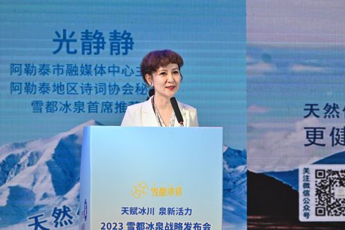 雪都冰泉首席推薦官光靜靜生動形象的介紹了雪都阿勒泰、新疆雪都冰川水有限公司的發展歷程及雪都冰泉的低氘特性。