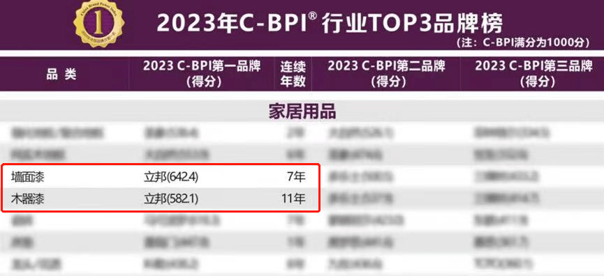 立邦墻面漆與木器漆斬獲2023年中國品牌力指數(C-BPI?)行業第一
