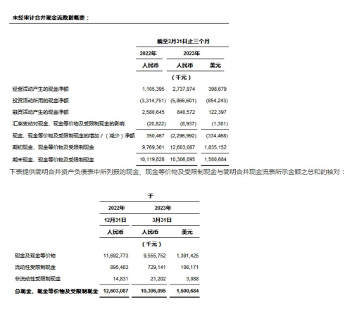 ? 經營活動產生的現金凈額為人民幣2,738.0百萬元(398.7百萬美元),而2022年同期為人民幣1,105.4百萬元。