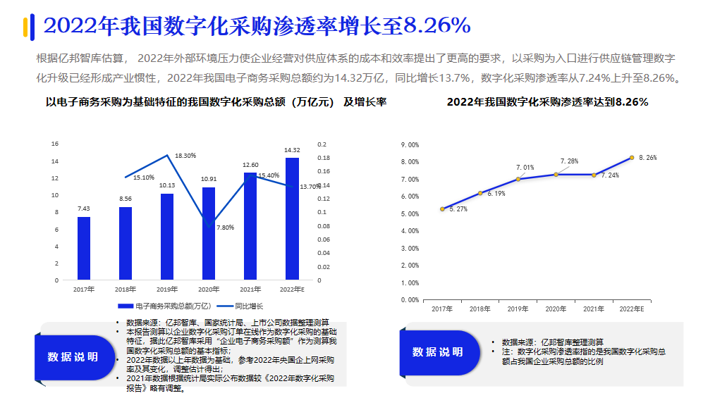 2022年我國數字化采購滲透率增長至8.26%