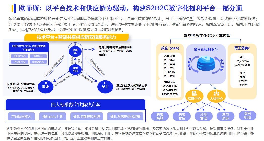 歐菲斯以平臺技術和供應鏈為驅動,構建S2B2C數字化福利平臺。