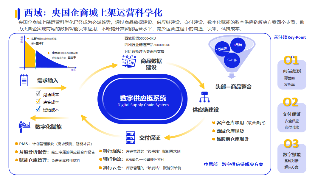 對于供應商來說,為用戶提供供應鏈服務是基礎能力,但供應鏈的“精細化”運營才是考驗供應商的核心能力。例如:西域依托平臺積累和沉淀大量的用戶、商品和交易數據,提供精細化的數據、商品、庫存和交付的運營服務,進行深度的數據治理,幫助用戶精選優質商品和智能備貨。