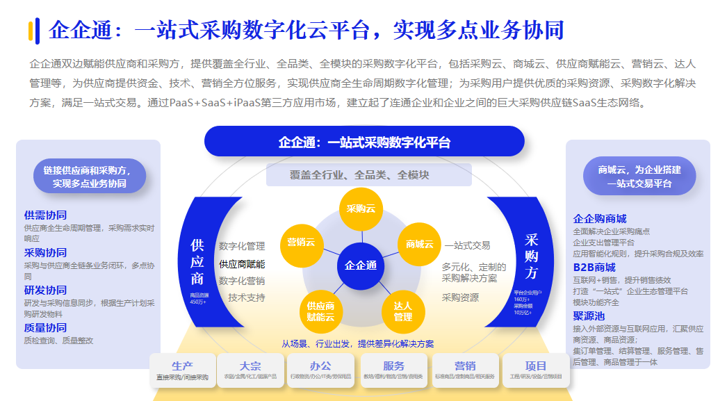 還有一采通,基于采購品類管理體系,打造了數智化采購平臺。