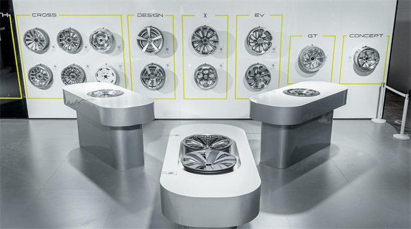 現場還展示了PLAY.STH的5個系列13款輪轂,分別為CROSS系列、X系列、GT系列、DES!GN系列、EV系列等,多款造型適配不同用車場景。這5個系列輪轂均為6061-T6 鋁合金材質的鍛造輪轂,結構強度高,成品輕量化。據了解,其中的CR01\CR02\CR03 款是國內首批獲得 LM 認證的輪轂,PLAY.STH所有輪轂產品在上市前均會主動完成車輪沖擊性能試驗、車輪動態彎曲疲勞性能試驗、車輪動態徑向疲勞性能試驗等輪轂三大安全性能試驗,漆膜品控堅持更高要求的車規級標準。內部輪轂及整車設計團隊溝通配合,確保產品在造型出眾的同時,滿足安全可靠的基本要求。