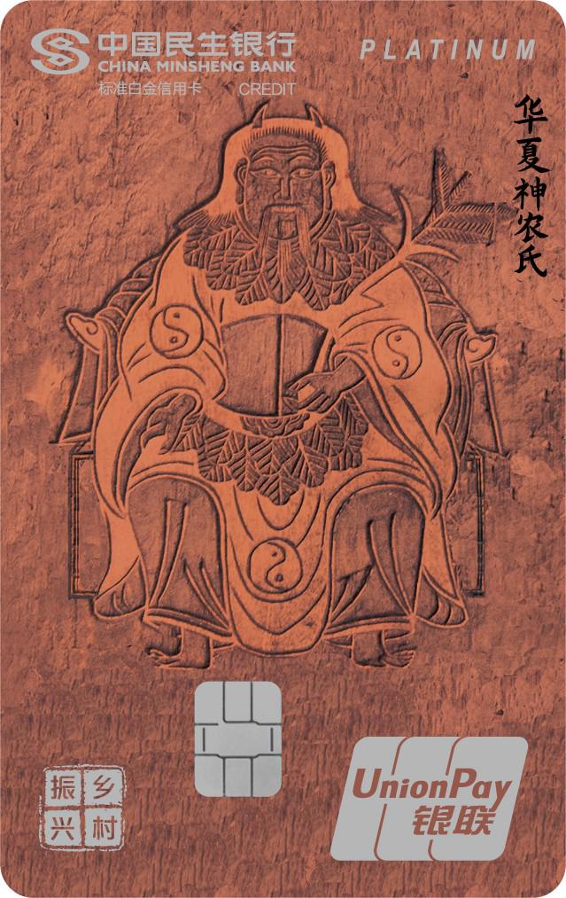該卡首次采用民生銀行定點幫扶縣——河南省滑縣國家級非遺木版年畫為版面,卡面以華夏神農氏為主形象,形象地描繪出農耕文化和民族風情,展現了中華傳統美術工藝,為金融機構助力鄉村振興又添碩果。