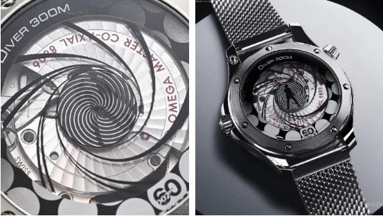 這種通過秒針聯動的功能,歐米茄并不是第一次使用。在此之前,2020年推出歐米茄超霸系列“史努比獎”50周年紀念腕表(第三代史努比),手表背面就是靠計時秒針(計時表的中央計時秒針)聯動,帶動背面的史努比飛船,沿著底蓋外圈,繞月飛行。同時,正常的走時小秒針,會帶動表背的地球,持續轉動。現在,海馬系列300米潛水表詹姆斯·邦德60周年紀念版精鋼款將秒針聯動呈現出“動態效果”,其中蘊含的創意令人嘆為觀止。
