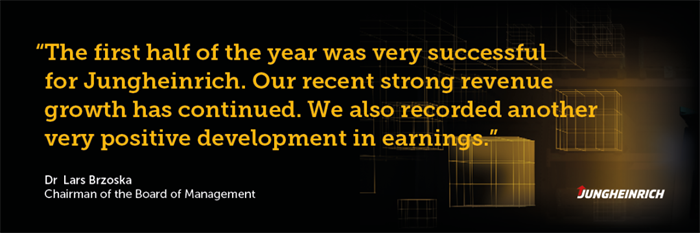 永恒力集團董事會主席Lars Brzoska博士解釋道:“今年上半年對永恒力而言可謂碩果累累。我們延續了近期營業收入強勁增長的勢頭。增幅達到了46%,我們在盈利方面再次實現了極為喜人的增長。通過收購Storage Solutions集團,我們在美國貨架系統和倉儲自動化領域贏得了一個重要的增長點。這一點目前已首次體現在集團的合并財務報表內。我們繼續推進實施2025+戰略,并確認本年度的預測數據。永恒力已經為迎接未來做好了充分的準備。”