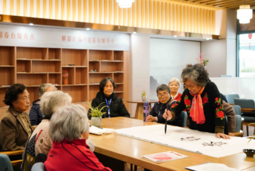 活動中,另一位80多歲的阿姨現場書寫了“春臺書香”四個大字,寄語書香社區的營建。
