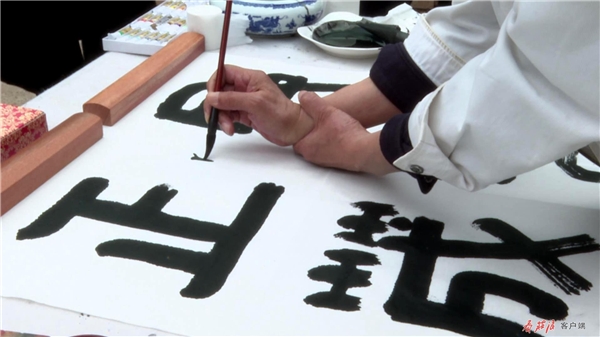 在農家小院,閻正正在聚精會神地揮毫潑墨,他在筆墨的運用上別出心裁、匠心獨運,流暢的線條蒼勁有力,書法作品淋漓盡致地展現于尺幅之上。談起他創作的靈感,閻正說,“莊浪歷史悠久、文化底蘊深厚、森林植被覆蓋率高,儼然一幅天然山水畫。莊浪縣云崖寺自然風光秀麗,石窟藝術精美,有遠山、有水庫、有寺廟,它完全具備中國畫的每一個條件。”