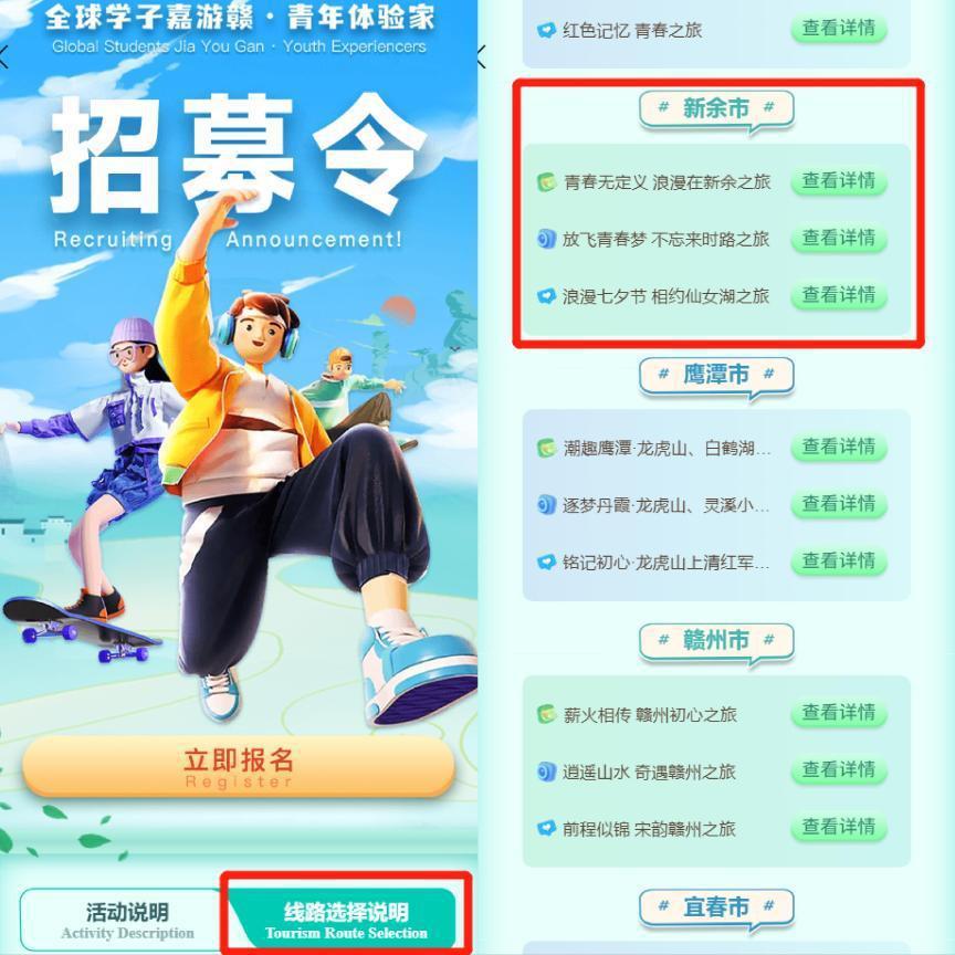 1.所有報(bào)名者均可享受各地優(yōu)惠政策,各地將從報(bào)名者中選擇邀請“嘉游贛·青年體驗(yàn)家”。
