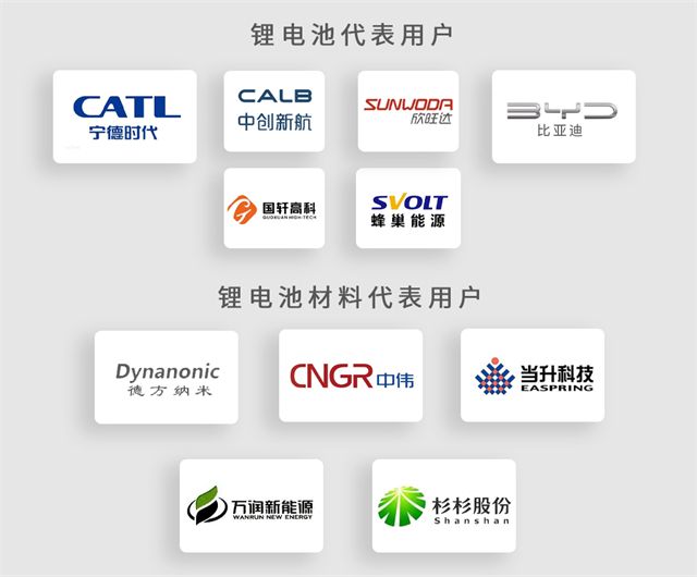 鋰電池企業(yè):寧德時代?,比亞迪?,中創(chuàng)新航,國軒高科,欣旺達,蜂巢能源等。鋰電材料企業(yè):德方納米,中偉股份,當升科技,湖北萬潤,杉杉股份等,均為我公司長期用戶。
