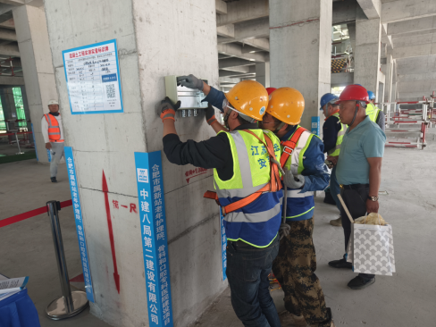 競賽結束后,開展了新站醫院項目施工現場安全質量觀摩活動。觀摩人員對觀摩項目采用的“鍍鋅盤扣+鋼板網”防護體系、鍍鋅盤扣內支撐架體系的安全性等展開了積極討論,并給予高度評價,對項目采取的“三區”(防墜區、走道區、料場區)分離的超前策劃以及“三色聚氨酯”“混凝土攔茬”等創新技術應用進行了深入了解。