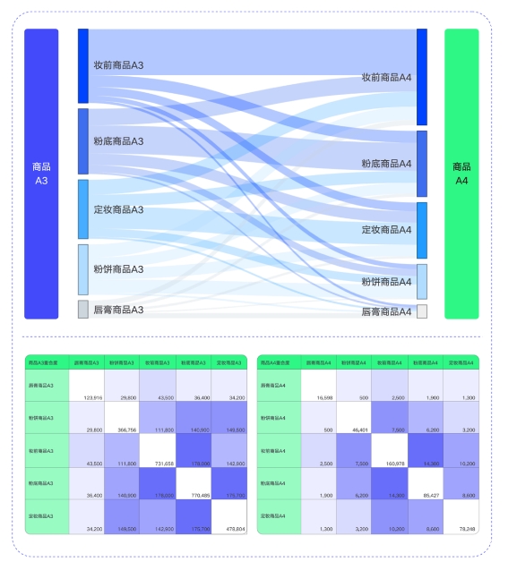 一方面,品牌可以通過比對不同商品SPU的5A人群重疊和流轉(zhuǎn)情況,找到商品多類目興趣人群、跨類目潛力購買人群和品牌忠誠人群等,擴寬人貨度量新視野;