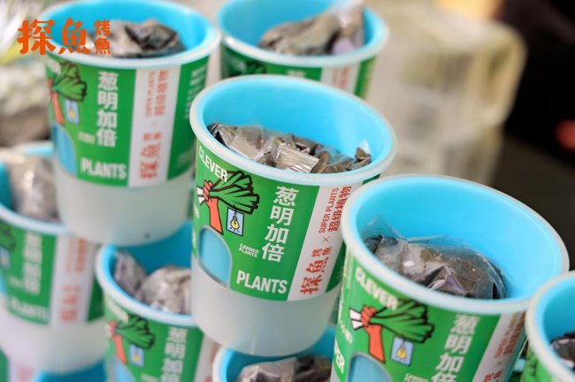 在產(chǎn)品研發(fā)上,探魚也充分考慮了顧客在感官、味覺、互動(dòng)等多方面的場(chǎng)景體驗(yàn),最新推出的“鮮青椒蔥蔥烤魚”就充分體現(xiàn)了這一點(diǎn)。鮮青椒蔥蔥烤魚在創(chuàng)新理念上,是探魚招牌口味“鮮青椒爽麻烤魚”口味的味型升級(jí),在藤椒口味的基礎(chǔ)上增加時(shí)令性的蔥香風(fēng)味,一經(jīng)推出,就頗受大眾喜愛。據(jù)悉,新品上市7天,已經(jīng)比去年同期上新的烤魚銷量上漲105%。在產(chǎn)品呈現(xiàn)上,新品上餐時(shí)配上一整棵鮮甜大蔥,然后由服務(wù)人員現(xiàn)場(chǎng)進(jìn)行“剪蔥儀式”,將蔥段下入鍋內(nèi),提味增香,同時(shí)為消費(fèi)者營造一種新奇特的體驗(yàn)感。除此之外,探魚借勢(shì)本次上新,與最近大熱的植物品牌“超級(jí)植物公司”聯(lián)名推出可以種出小蔥的“蔥明種子卡”,不僅深化蔥的產(chǎn)品主題,還收獲了目標(biāo)客群“打工人”的情感共鳴。