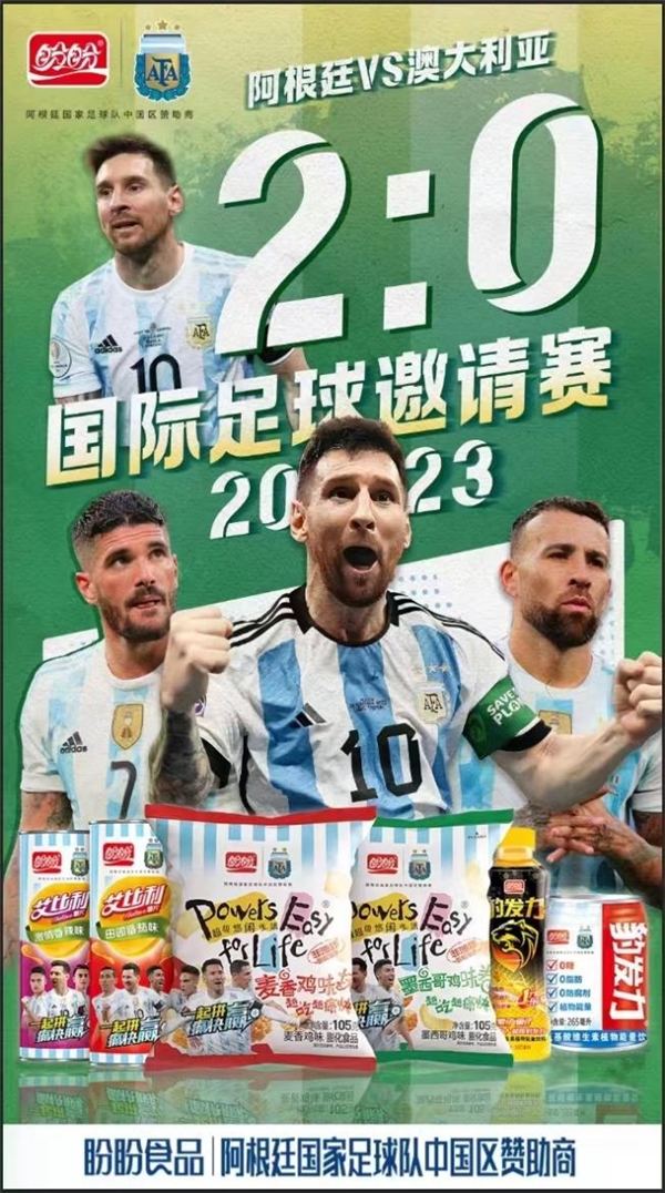 6月15日,萬(wàn)眾矚目的2023北京阿根廷vs澳大利亞國(guó)際足球邀請(qǐng)賽在北京工人體育場(chǎng)正式開(kāi)打。梅西開(kāi)場(chǎng)僅81秒率先進(jìn)球,帶領(lǐng)阿根廷隊(duì)最終以2比0戰(zhàn)勝澳大利亞隊(duì),阿根廷隊(duì)以他們頂級(jí)的技術(shù)水平和默契的團(tuán)隊(duì)合作,折服了現(xiàn)場(chǎng)數(shù)萬(wàn)觀眾。盼盼食品作為阿根廷隊(duì)的官方贊助商,熱烈祝賀阿根廷隊(duì)在亞洲巡回賽首戰(zhàn)告捷!