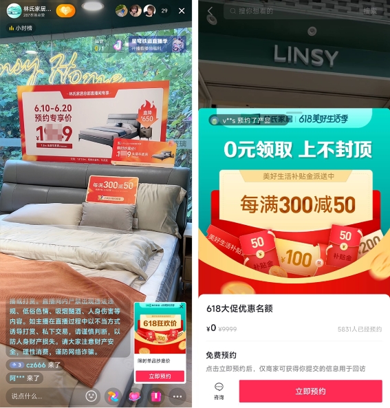 為此,林氏家居攜手全國線下經銷商和800多家門店共同參與"618美好生活季"主題活動,期間統一商品活動價格,發揮規模效應。通過線上的引流造勢,林氏家居將用戶引導至線下經銷商的實體店,增加線下店鋪的客流量 ,同時進行更深入的產品展示和銷售推廣,進一步提高品牌的認知度和銷售機會。