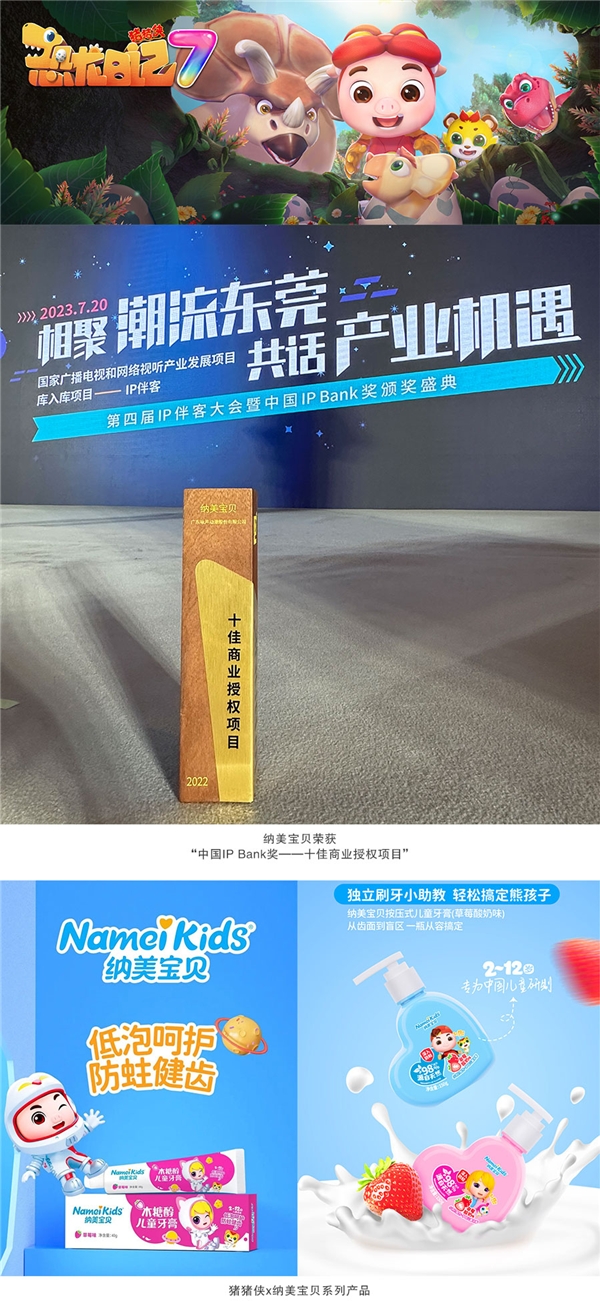 其中,豬豬俠攜手納美寶貝,開發了20多款備受消費者青睞的兒童口腔護理產品,并在沃爾瑪、大潤發、永輝等全國優質商超上線,該系列產品在兒童牙膏/牙刷品類實現細分領域市場排名前十,榮獲“中國IP Bank獎——十佳商業授權項目”。目前,詠聲動漫旗下各大IP授權合作覆蓋玩具、食品、文具、家居日化用品、游戲、出版物、主題業態等共計12個行業,衍生品品類達上百種,年零售市值超50億元。