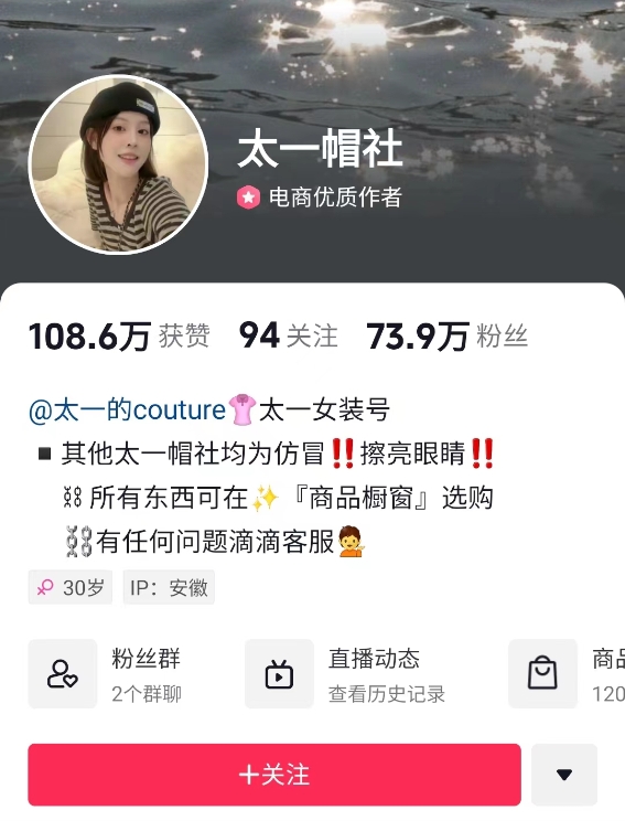 嘉琪找到一個做了8年的帽子生意的朋友,向他了解有關(guān)帽子的選品、供應(yīng)鏈之類的問題后,決定進入這個賽道,并給賬號取名“太一帽社”。