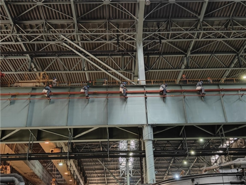 截止18點(diǎn)00分,隨著硅鋼事業(yè)部第二智慧工廠6-2行車滑線檢修項(xiàng)目一次性試車成功,標(biāo)志著第二智慧行車滑線檢修項(xiàng)目施工任務(wù)圓滿結(jié)束,刷新了滑線檢修項(xiàng)目施工最短用時(shí)的新紀(jì)錄。中冶寶鋼基層單位高度重視,開工前專業(yè)點(diǎn)檢人員積極與硅鋼事業(yè)部溝通協(xié)調(diào)停機(jī)時(shí)間,同時(shí)從班組抽調(diào)出10余名精兵強(qiáng)將參與到此次劃線檢修的施工中。施工前現(xiàn)場進(jìn)行列隊(duì)安全交底,辦理相關(guān)手續(xù),落實(shí)各項(xiàng)安全措施,嚴(yán)格執(zhí)行“三方掛牌”制度。在檢修過程中,公司結(jié)合自身特點(diǎn)和實(shí)際情況,認(rèn)真落實(shí)二級高危安全要求,作業(yè)人員佩戴和正確使用合格的“四合一”檢測儀。從安全交底的落實(shí)到安全帶的規(guī)范佩戴,從安全繩的安裝到現(xiàn)場安全的監(jiān)護(hù),對每一個(gè)環(huán)節(jié)都絲毫不敢懈怠。在克服高空作業(yè)、戰(zhàn)線長、工期緊等施工難度的同時(shí),對施工質(zhì)量也高標(biāo)準(zhǔn)嚴(yán)要求,滑線吊掛夾更換按照維修作業(yè)標(biāo)準(zhǔn),做好每一道工序每一個(gè)步驟,嚴(yán)把質(zhì)量關(guān),為檢修用時(shí)提供了有力保證,
