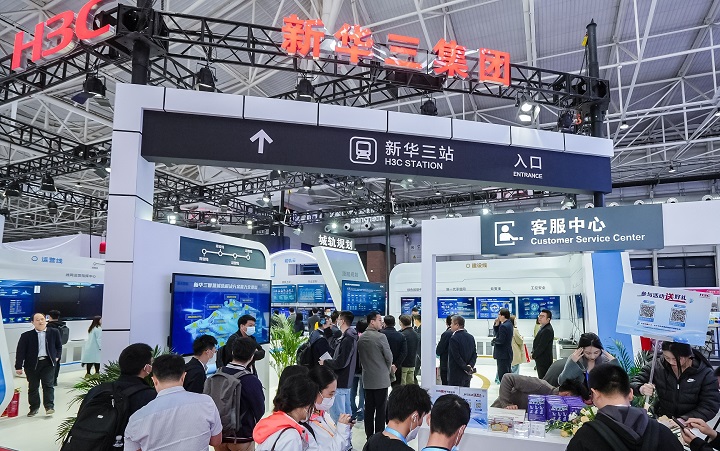 眾多行業領導蒞臨新華三展區參觀合影留念