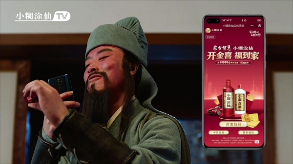 借助“開金喜 福到家”話題水到渠成的熱度,小糊涂仙推出了#掃碼的N種姿勢#線上衍生活動,以《酒煮三國》微電影引出話題,與消費者進行線上互動,鞏固小糊涂仙品牌創新形象的同時,以交互的形式再次回饋消費者,展現國民品牌擔當。