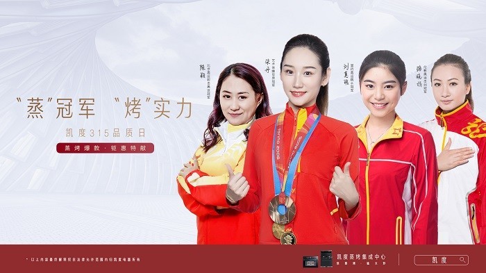 要買(mǎi)專(zhuān)業(yè)蒸烤,就選凱度電器。此次凱度315品質(zhì)日,北京奧運(yùn)射擊冠軍陳穎、倫敦奧運(yùn)擊劍冠軍駱曉娟、里約奧運(yùn)跳水冠軍劉蕙瑕、藝術(shù)體操世界冠軍朱丹4位體壇冠軍聯(lián)合推薦凱度電器,正面詮釋了凱度的冠軍精神和冠軍品質(zhì)。
