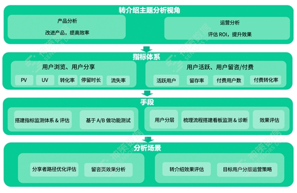 轉(zhuǎn)介紹場(chǎng)景下的重點(diǎn)有四個(gè):老用戶池、激勵(lì)體系、分享路徑和內(nèi)容、新用戶轉(zhuǎn)化。如下圖所示:
