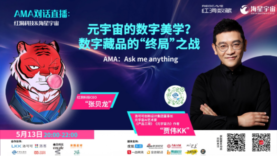 5月13日晚上20:00,海星宇宙?將聯合?紅洞科技?舉辦一場AMA元宇宙大咖對話直播,共同探討元宇宙的數字美學與數字藏品“終局”之戰的話題。