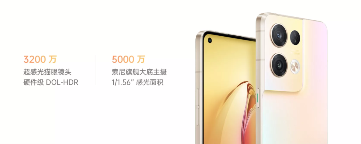 OPPO Reno8 Pro后置搭載了5000萬像素索尼定制IMX766主攝,輔以800萬像素廣角鏡頭+200萬像素微距鏡頭,可以說輕松完成多場景、多焦段的拍攝需求。同時Reno8 Pro還內置自研馬里亞納? MariSilicon X NPU芯片,配合OPPO前后雙定制影像傳感器、人像算法矩陣等軟硬件,共同構建雙芯人像攝影系統,實現了4K夜景視頻下的AI降噪,4K HDR視頻以及芯片級APP相機增強等功能。