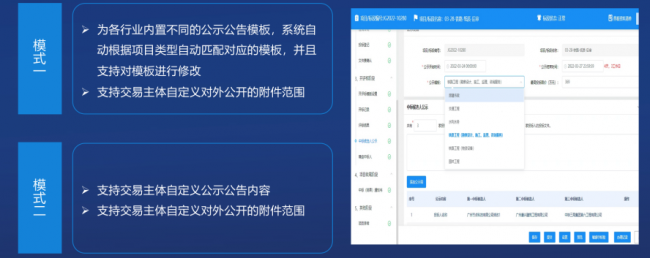 靈活的建設工程交易系統。系統提供通用接口,接收各平臺推送的項目信息,實現與上下游系統數據的聯通,保證數據準確性,同時減輕交易主體在各個系統的反復錄入工作。系統支持用戶自由選擇范本和公示公告模式,提供“隨意化”的在線編標方式,還通過內置多種任務自動分配方式,滿足各部門管理方式的多樣性需求。
