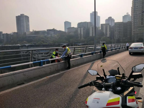 “我下了巡邏車后,看到欲輕生女子的注意力沒有在我這邊,我和正在勸阻的民警打了個手勢,讓民警吸引女子的注意力。”與此同時,楊洋步行靠近女子方向,邊走邊卸下身上攜帶的執勤裝備,趁其不備時迅速跨過欄桿,一把抱住欲輕生女子將其救下,現場公安民警同志也迅速跨越欄桿幫忙穩住并安撫輕生女子。隨后,江北區華新街派出所民警也迅速到達現場,楊洋協助民警將輕生女子帶回該派出所,另一名趕到現場的渝警驍騎隊員韋小虎則迅速展開交通疏導工作。