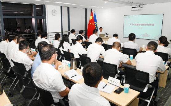 圖為公司紀委書記牛春忠在為優訓營學員及近三年新入職員工開展廉潔文化講座。