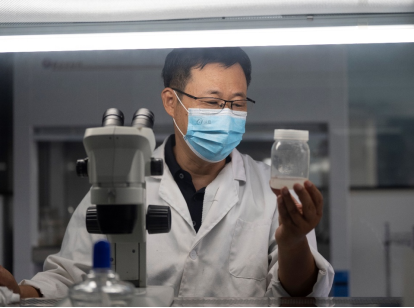 ▲煙薯25號育成人辛國勝正在進行莖尖剝離實驗。脫毒種苗進行繁育后會供應給農戶種植。小滿|攝