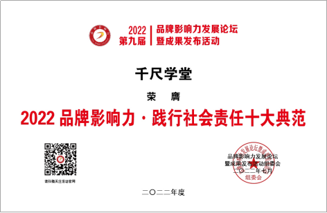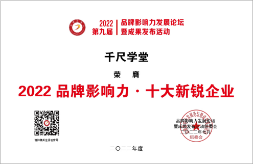 近日,由《發(fā)現(xiàn)品牌》欄目組、對(duì)外經(jīng)濟(jì)貿(mào)易大學(xué)中國(guó)國(guó)際品牌戰(zhàn)略研究中心、《中國(guó)企業(yè)報(bào)》集團(tuán)主辦的2022品牌影響力發(fā)展論壇暨成果發(fā)布活動(dòng)正式舉辦。活動(dòng)以“大力發(fā)展品牌戰(zhàn)略促進(jìn)經(jīng)濟(jì)高質(zhì)量發(fā)展”為主題。圍繞中國(guó)品牌創(chuàng)建行動(dòng),培育新型消費(fèi),實(shí)施領(lǐng)航企業(yè)培育工程,促進(jìn)專精特新小巨人企業(yè)培育等內(nèi)容展開(kāi)分析探討。在著重推介具有優(yōu)秀成長(zhǎng)性或影響力的品牌環(huán)節(jié)中,千尺學(xué)堂榮膺“2022品牌影響力·十大新銳企業(yè)”、“2022品牌影響力·踐行社會(huì)責(zé)任十大典范”兩項(xiàng)大獎(jiǎng)。