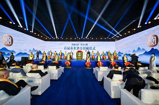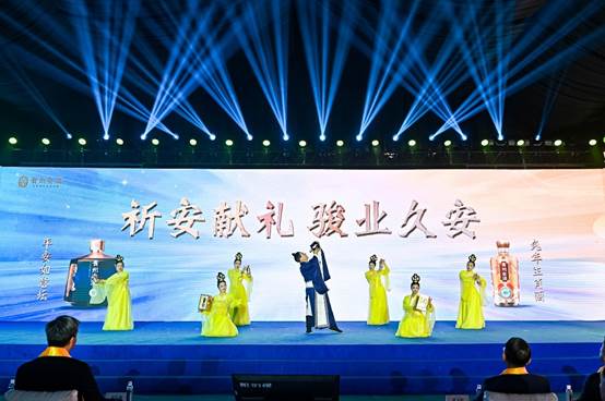 貴州安酒祈安大典分為“入安”“祈·企安”“祈·心安”“見安”和“品安”五個章節,在“祈·企安”環節中,貴州安酒用傳統舞蹈劇的形式發布了新品癸卯兔年生肖酒和平安如意壇。之后還舉行了赤水酒谷封藏儀式,由001號封藏官姜文邀請20位嘉賓上臺完成封藏儀式。貴州安酒追根溯源,敬天地自然,以美酒封藏,承載美好期盼,并形成了安酒講究的封藏酒禮典制。