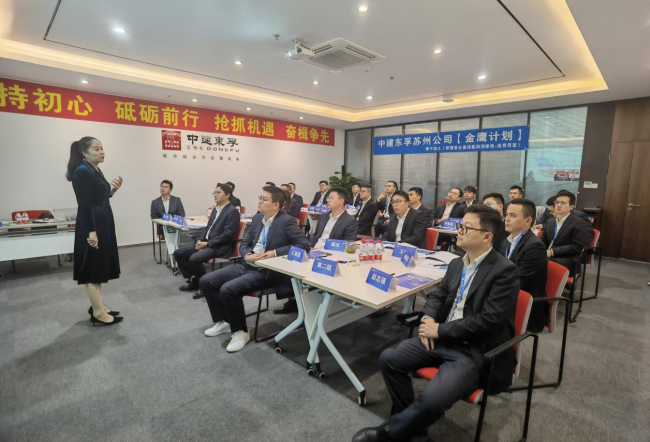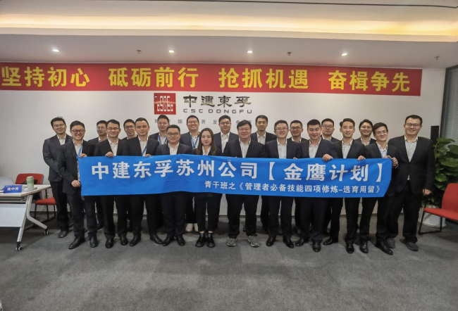 11月26日,中建東孚蘇州公司舉辦首屆“青年干部(后備人才)”培訓班。蘇州公司青年中層干部和后備人才共計25人參加培訓,蘇州公司黨總支副書記、副總經理、工會主席牛春雷出席開班儀式并致辭。