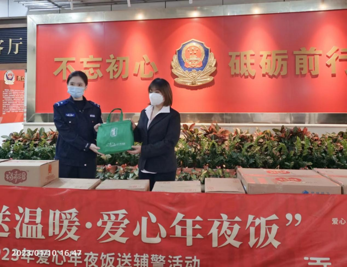 由中國企業報福建公司發起的“2023愛心年夜飯送輔警活動”第三個中國人民警察節當天在廈門市公安局大院隆重舉行,來自羅普特科技集團股份有限公司、福建重宇合眾律師事務所、廈門綠進食品有限公司、廈門達川臻富食品有限公司、廈門見福連鎖管理有限公司等愛心企業為廈門輔警支隊一線輔警送來了節日的問候和預制菜、油、果汁等愛心年夜飯“大禮包”,以及口罩等防疫物資,向奮斗在在一線守護廈門城市平安的執勤輔警表示感激和敬意。