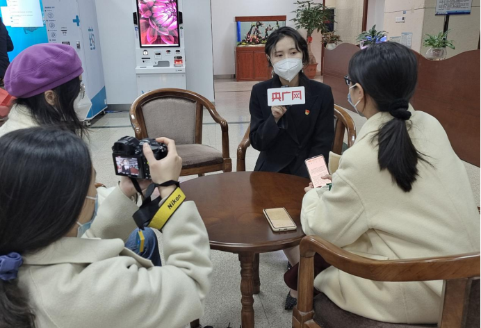 福建重宇合眾律師事務所黨總支委員翟亞男(前排)接受央廣網、中國經濟網等多家主流媒體采訪