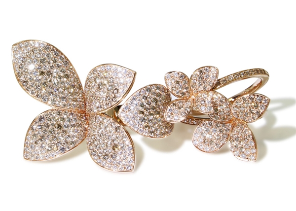 品牌標(biāo)志性的Giardini Segreti系列,汲取置身米蘭神秘的花園和庭院的靈感,鑲嵌大量白鉆或香檳鉆點(diǎn)綴,流動舒展,好似葉片在風(fēng)中如花朵紛飛,如蝴蝶般振翅舞動的蛻變之旅。