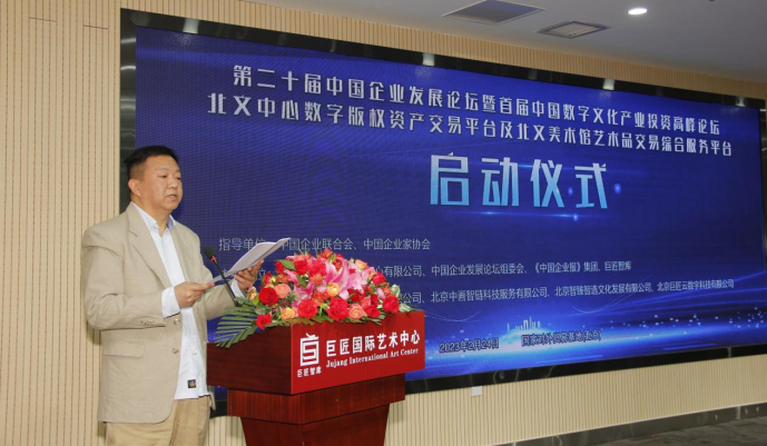 2023年2月24日,第二十屆中國企業發展論壇暨首屆中國數字文化產業投資高峰論壇啟動儀式在國家對外文化貿易基地(北京)舉行。與此同時,北文美術館藝術品交易服務平臺、北文中心數字版權資產發行平臺啟動儀式也如期舉辦。
