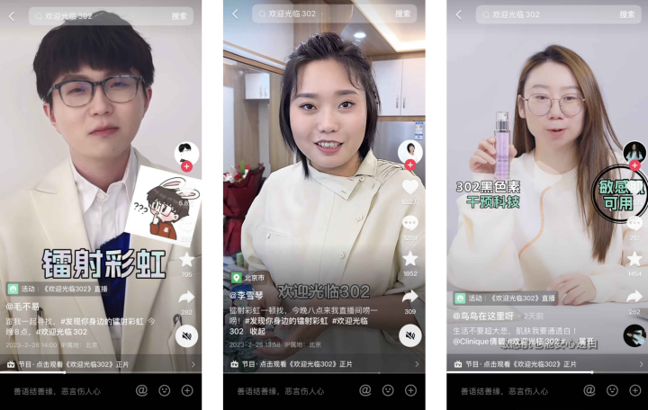 截至目前,活動收獲2億+曝光量、節目播放總量突破7800萬次,抖音話題#歡迎光臨302 收獲播放量1.3億+,引起廣泛熱議與共鳴。