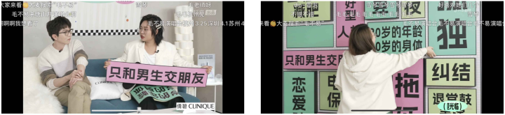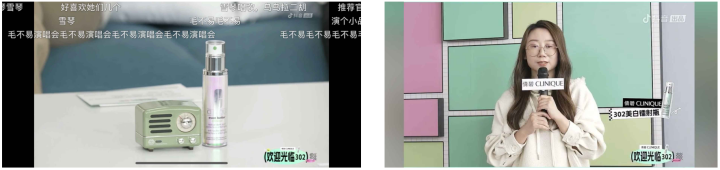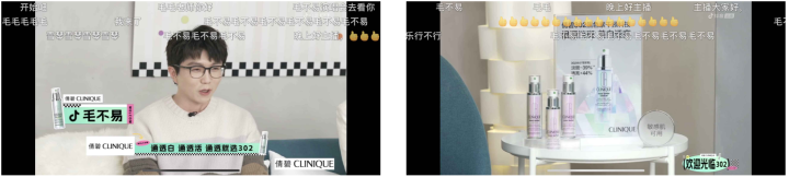 經過前期的聲量積累,倩碧在直播環節中更為聚焦于將創新綜藝形式與品牌宣傳結合,通過片頭片尾廣告片、桌面產品擺放、嘉賓創意口播等形式植入品牌和產品形象。