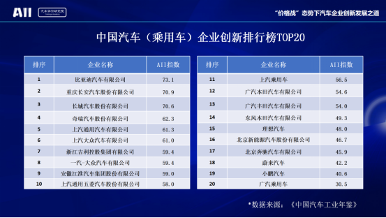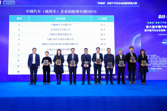 中國汽車(乘用車)企業創新排行榜之自主企業TOP10