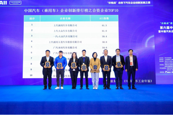 中國汽車(乘用車)企業創新排行榜之合資企業TOP10