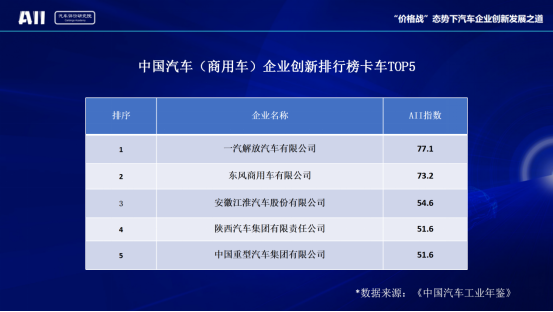 中國汽車(商用車)企業創新排行榜卡車TOP5