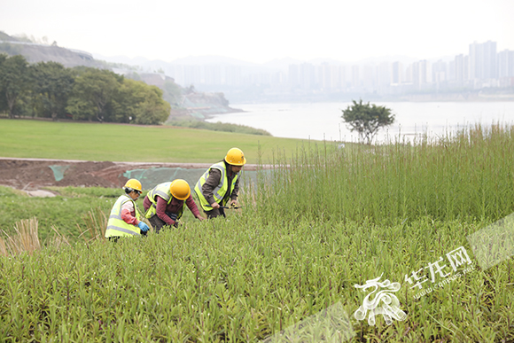工人正在進行綠化工程施工。華龍網-新重慶客戶端 首席記者 李文科 攝