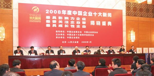 2009年1月,北京人民大會堂,2008年度中國企業十大新聞發布活動隆重舉辦。