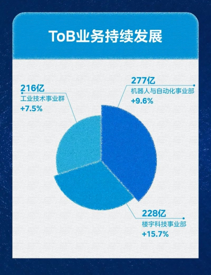 其中,智能家居事業群要實現高質量增長,確保穩定、持續的盈利能力和現金流;要通過創新變革,突破性解決非優勢品類、新興品類、高端品牌等方面發展中的問題和挑戰。同時堅定發展第二引擎,著力發展機器人與自動化、樓宇科技和新能源等核心ToB業務;聚焦研發投入強度和體系建設,對標世界級標桿企業進行提升,同時積極布局海外業務,實現全球突破。